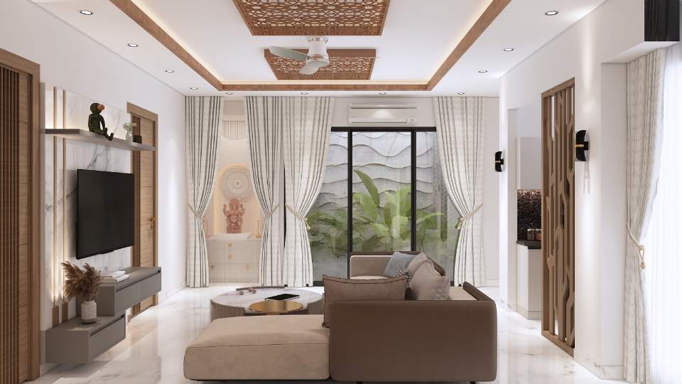 We provide turnkey interior solutions, concept development, planning, 3D visualization, Vastu design consulting, project coordination, cost control, and on-site execution support.